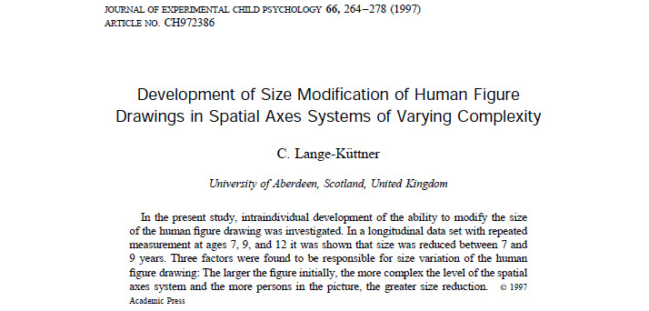 Lange-Küttner, C. (1997). Development of size modification of human figure drawings in spatial axes systems of varying complexity. Journal of Experimental Child Psychology, 66, 264-278. DOI: 10.1006/jecp.1997.2386