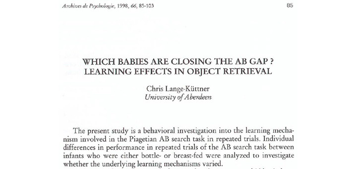 Lange-Küttner, C. (1998). Which babies are closing the AB gap? Learning effects in object retrieval. Archives de Psychologie, 66(257), 85-103. INIST-CNRS ID 2306188