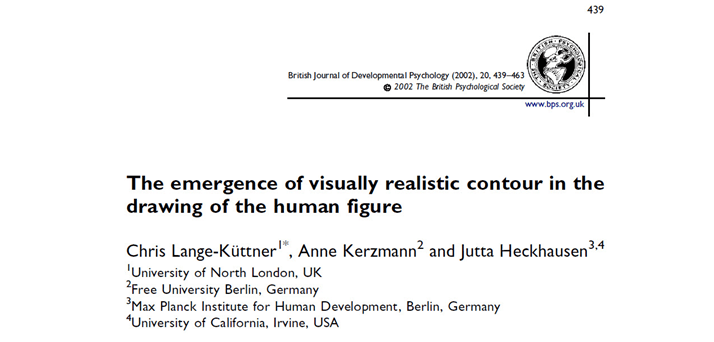 Lange-Küttner, C., Kerzmann, A., & Heckhausen, J. (2002). The emergence of visually realistic contour in the drawing of the human figure. British Journal of Developmental Psychology, 20, 439-463. DOI: 10.1348/026151002320620415