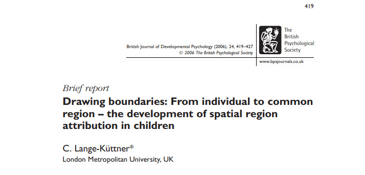Lange-Küttner, C. (2006). Drawing boundaries: From individual to common region. The development of spatial region attribution in children. British Journal of Developmental Psychology, 24, 419-427. DOI: 10.1348/026151005X50753