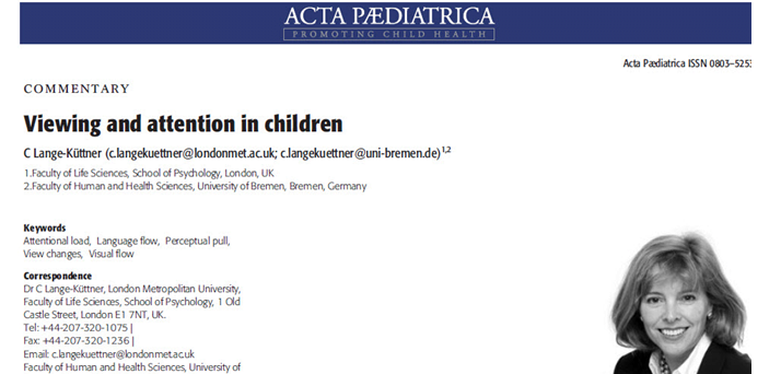 Lange-Küttner, C. (2009). Viewing and attention in children. Acta Paediatrica, 98, 1553-1555. DOI:10.1111/j.1651-2227.2009.01422x