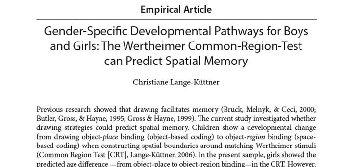 Lange-Küttner, C. (2010). Gender-specific developmental pathways for boys and girls: The Wertheimer Common-Region-Test can predict spatial memory. European Journal of Developmental Science, 4, 46-66. DOI: 10.3233/DEV-2010-4104