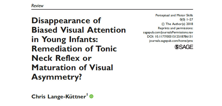 Lange-Küttner, C. (2018). Disappearance of biased visual attention in infants: Remediated tonic neck reflex or maturating visual asymmetry? Perceptual and Motor Skills, 125 (5), 839-865. DOI: 10.1177/0031512518786131